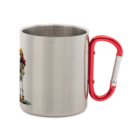 Edelstahl-Tasse mit Karabiner-Skelett Paar Hände halten